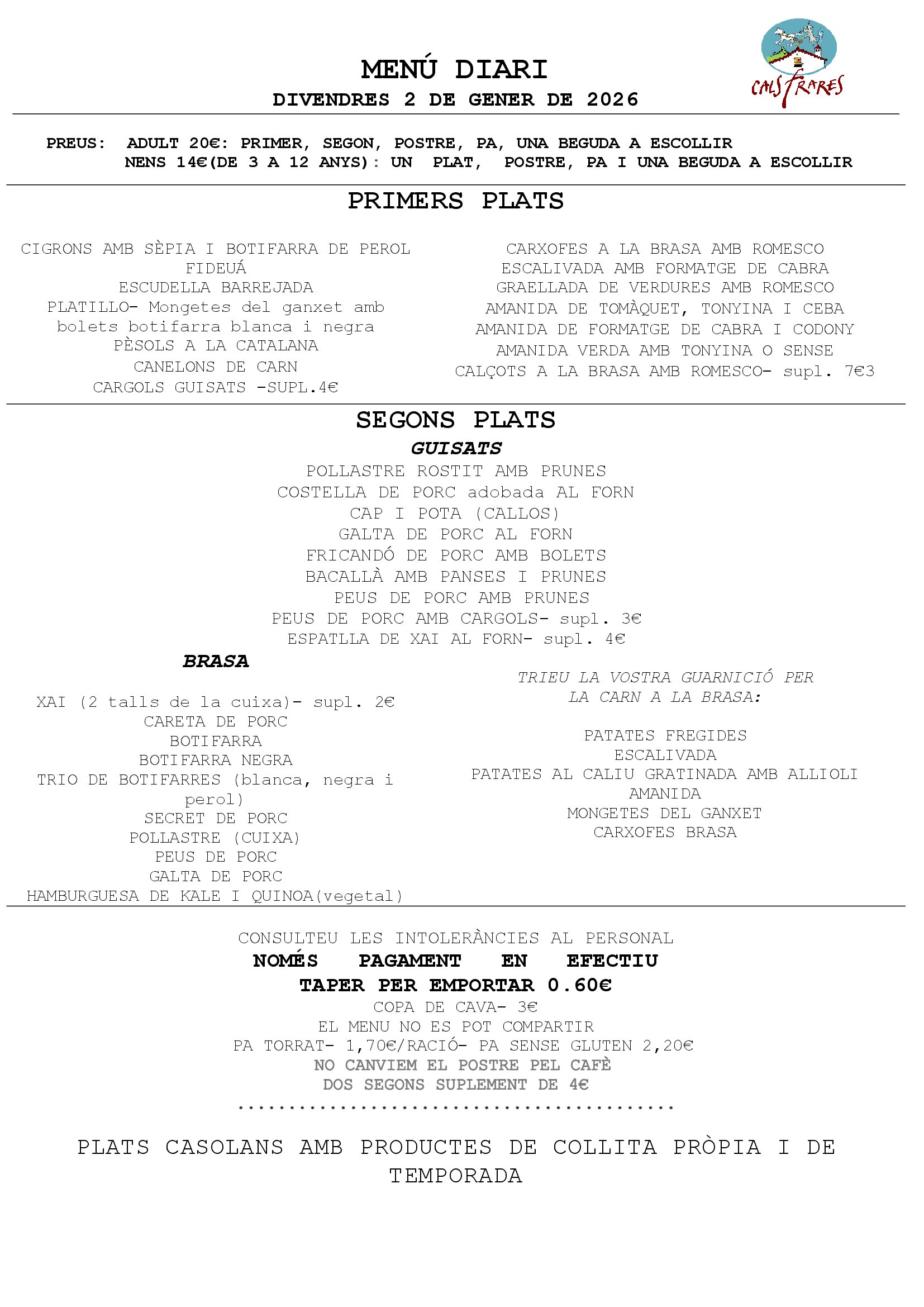 PRECIO DEL MENU DE NIÑOS (1 PLATO, POSTRE I BEBIDA) 14 EUROS